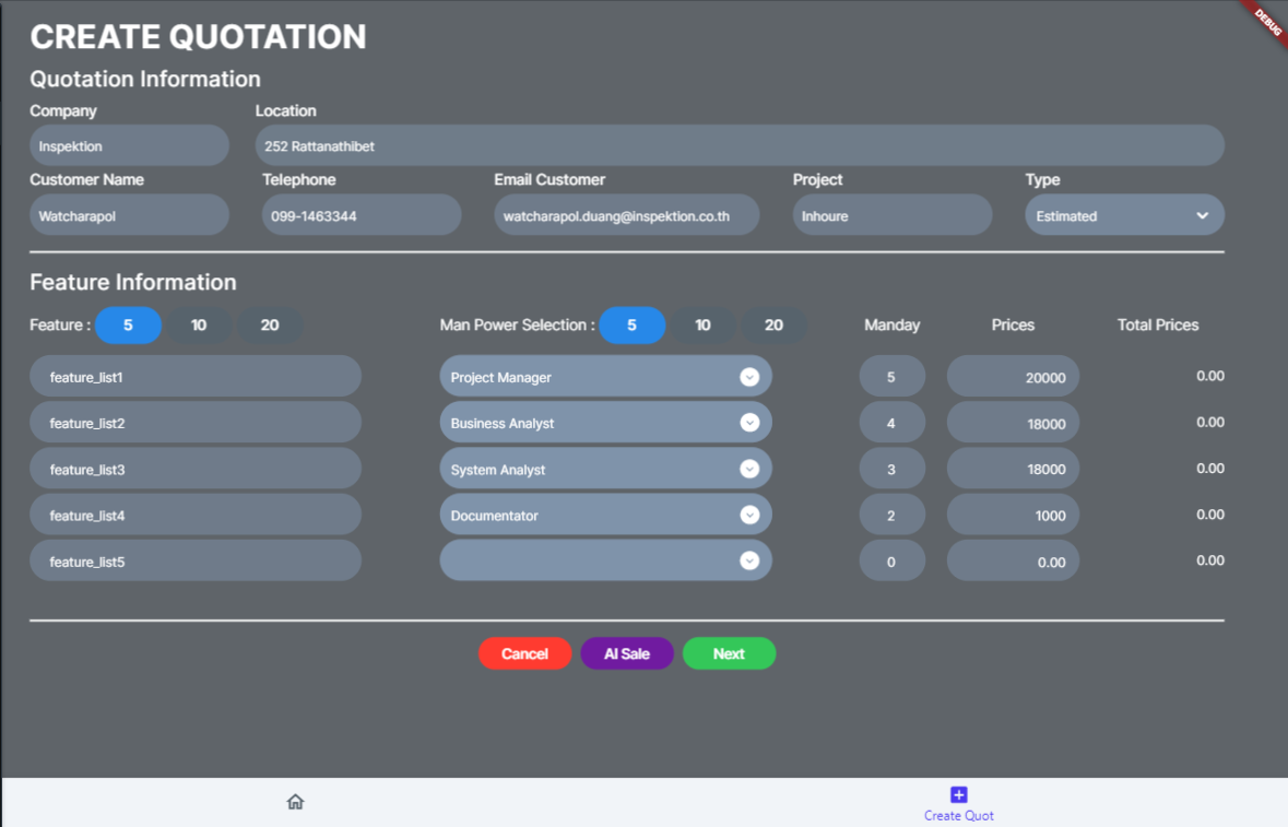 โครงการ DoQuot มุ่งเน้นการพัฒนาโปรแกรมที่ช่วยในการจัดทำใบเสนอราคาโดยอัตโนมัติจากโครงการเก่าที่มีอยู่ โปรแกรมนี้จะใช้เทคนิค Machine Learning (ML) เพื่อวิเคราะห์ข้อมูลจากโครงการก่อนหน้า ค้นหาโปรเจคที่ใกล้เคียง เพื่อเสนอราคาประมาณการให้กับลูกค้าใหม่อย่างรวดเร็วและแม่นยำ โดยระบบยังสามารถรวมถึงการประเมินหัวข้องานใหม่ ๆ และทั้ง Manday ใหม่ ๆ พร้อมให้ราคาอย่างละเอียด ทำให้ทีมขายสามารถนำเสนอและส่งใบเสนอราคาได้ทันที ช่วยเพิ่มประสิทธิภาพการดำเนินงานและลดความยุ่งยากในการจัดการข้อมูล